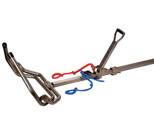 The 2020 mechanism is the core of the HK 2020 calving jack, integrating a series of three hooks that allow both alternate and simultaneous traction, thus optimizing the efficiency of calf extraction. Designed to react quickly, this mechanism is equipped with an instant disengagement function, which is crucial in case of unforeseen complications during calving, allowing the operator to release the traction immediately and safely. The flexibility of the bracket, combined with the lightweight and resistant aluminum mechanism, ensures seamless adaptation to all situations, offering better maneuverability and increased durability of the device.