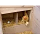 Monté sur quatre pieds surélevés du sol pour éviter que l’humidité du sol ne monte à l’intérieur de celui-ci. Il est équipé d’un double pondoir et d’un perchoir à l’intérieur.