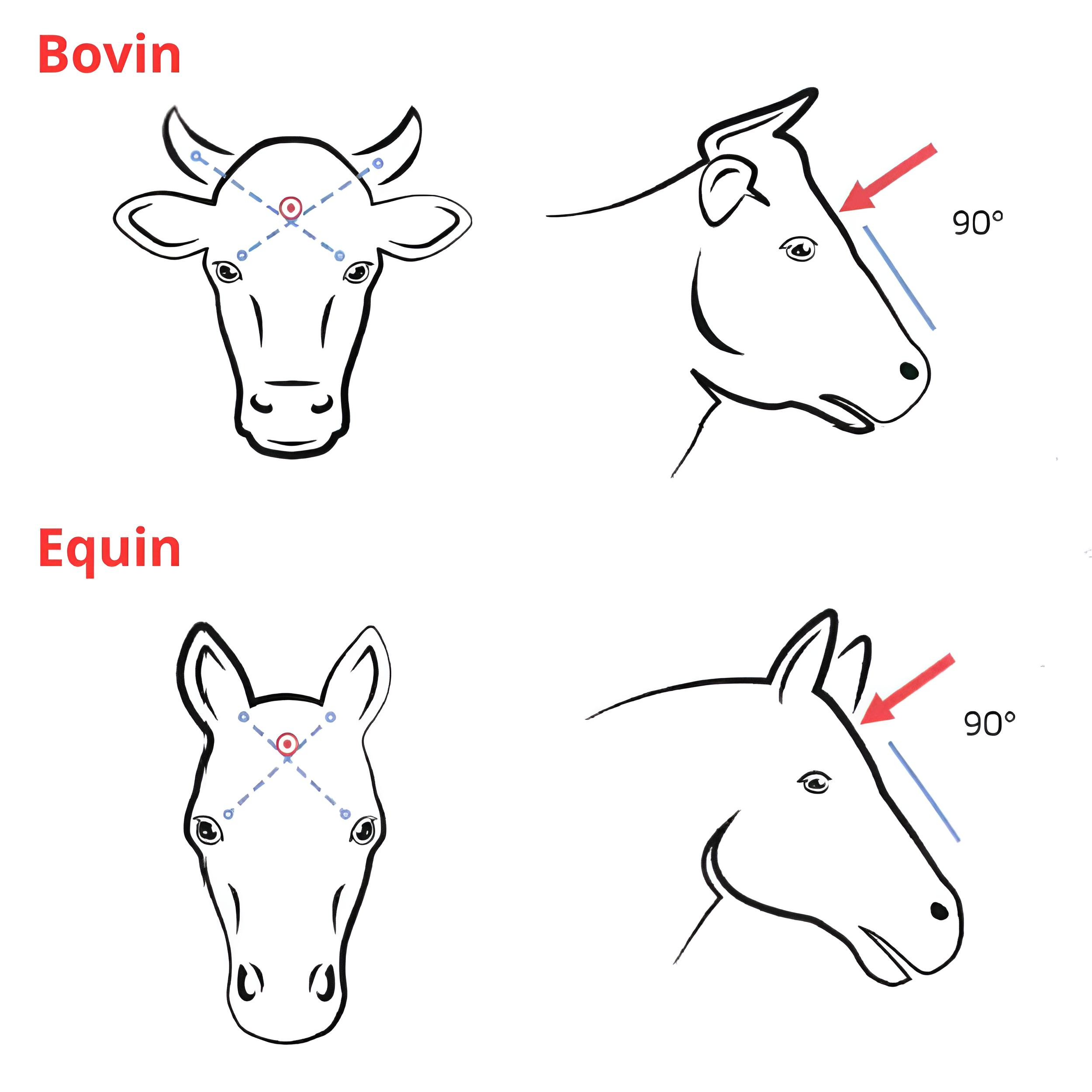 Waar moet je de Blitz verdovingsapparaat richten afhankelijk van het dier?