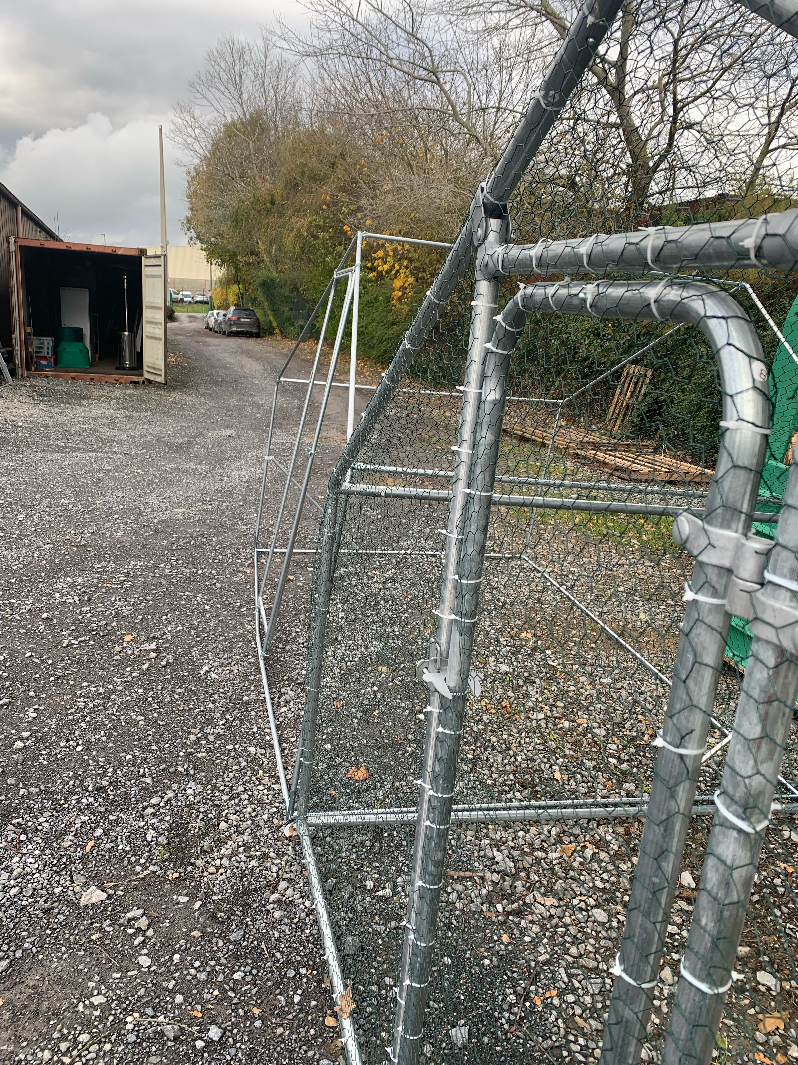 De gesloten gaasomheining combineert gemak en snelheid van montage met een effectieve bescherming tegen roofdieren zoals marters en vossen, waardoor de veiligheid van uw kippen gegarandeerd is.